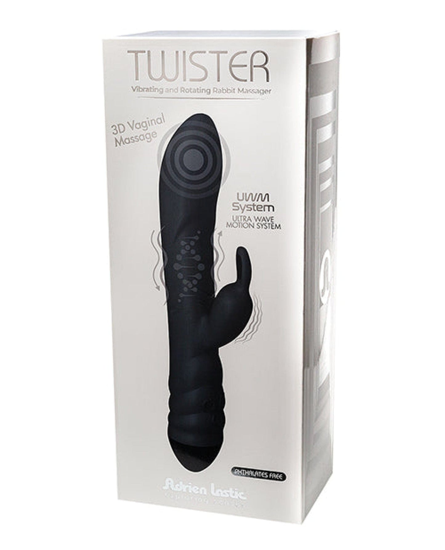 Introducing the Adrien Lastic Twister Clitoral Sucker & Vibrating Rabbit in sleek black. This innovative toy combines the best of both worlds, offering intense clitoral stimulation and powerful internal vibrations for an unforgettable experience.