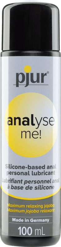 pjur® analyse me! anal silicone personal lubricant contains natural jojoba: jojoba has nourishing, moisturizing and soothing properties. The formula ensures the extra long lasting lubricating effect. May also be used for massage, moisturizing and skin conditioning. Only a few drops are needed. Never gets sticky or dries out. Leaves your skin soft and smooth. Non-irritating and does not block skin pores. Made without fats, fragrances, parabens, preservatives or water.