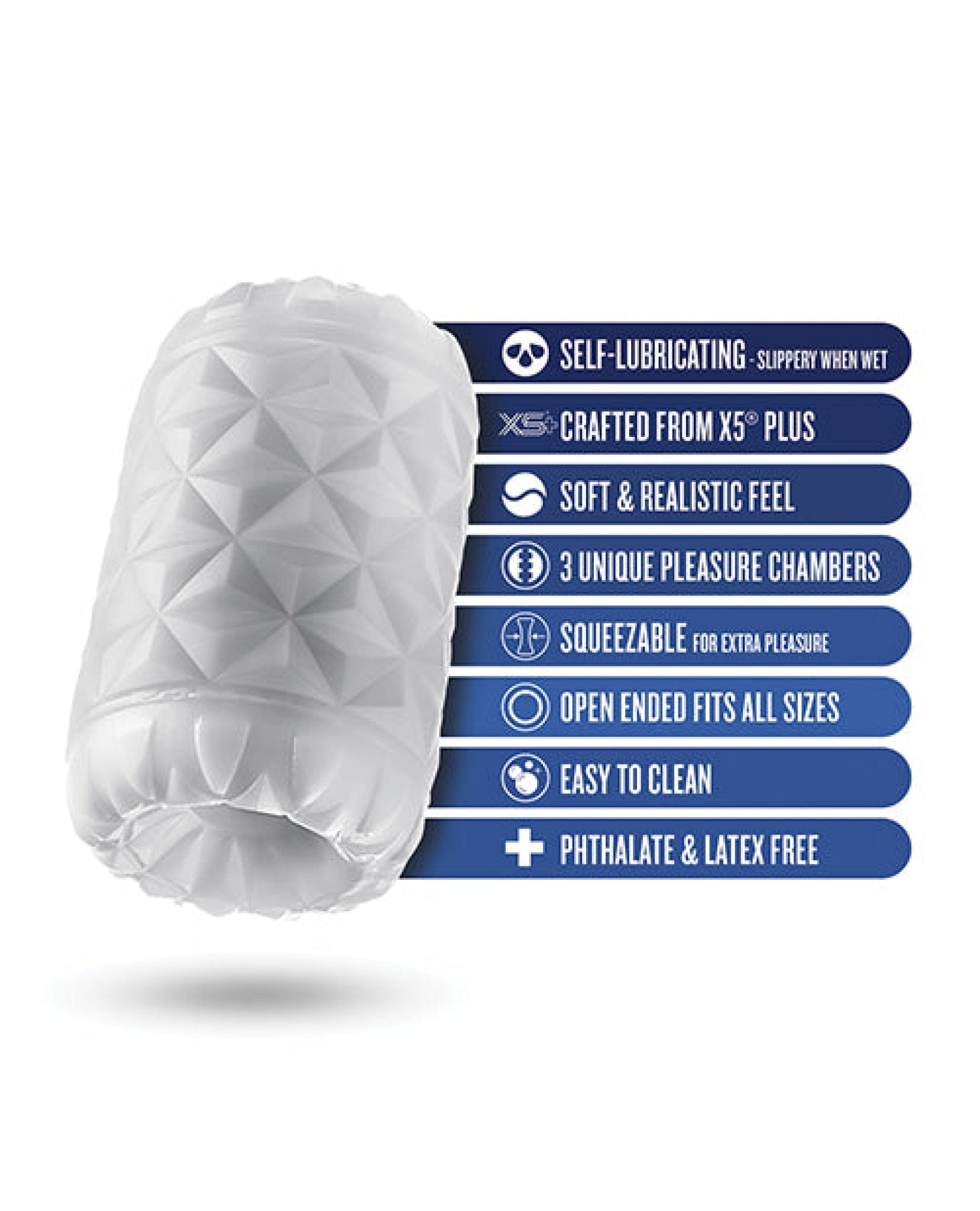 Introducing the Blush Rize Self Lubricating Stroker - Reakt, the ultimate fun-filled addition to your man-cave essentials! This versatile pocket stroker is designed to provide you with an unparalleled solo pleasure experience.