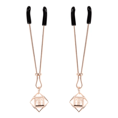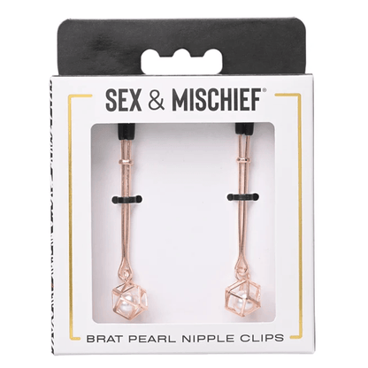 Push all your dom's buttons for the perfect "punishment." The adjustable Brat Pearl Nipple Clips offer varied sensations ranging from soft squeezes to pinching pleasures. Adorn your nipples with these beautiful rose gold clips dripping with faux pearl and get ready to turn up the heat.