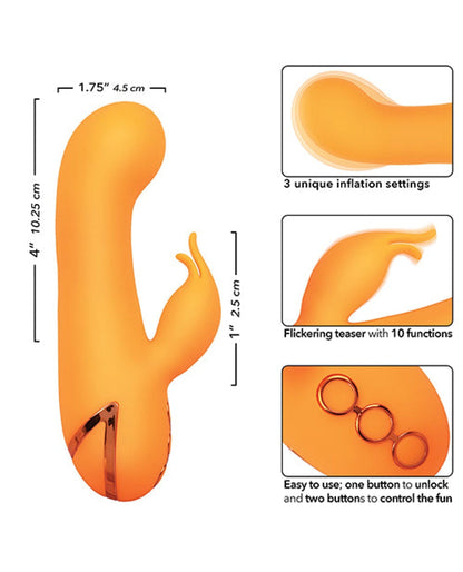 Immerse yourself in a world of unparalleled pleasure with the California Dreaming Montecito Muse Dual Stimulation Vibe in vibrant orange. This innovative dual stimulator combines powerful vibrations with the sensational experience of automatic inflation, taking your satisfaction to new heights.
