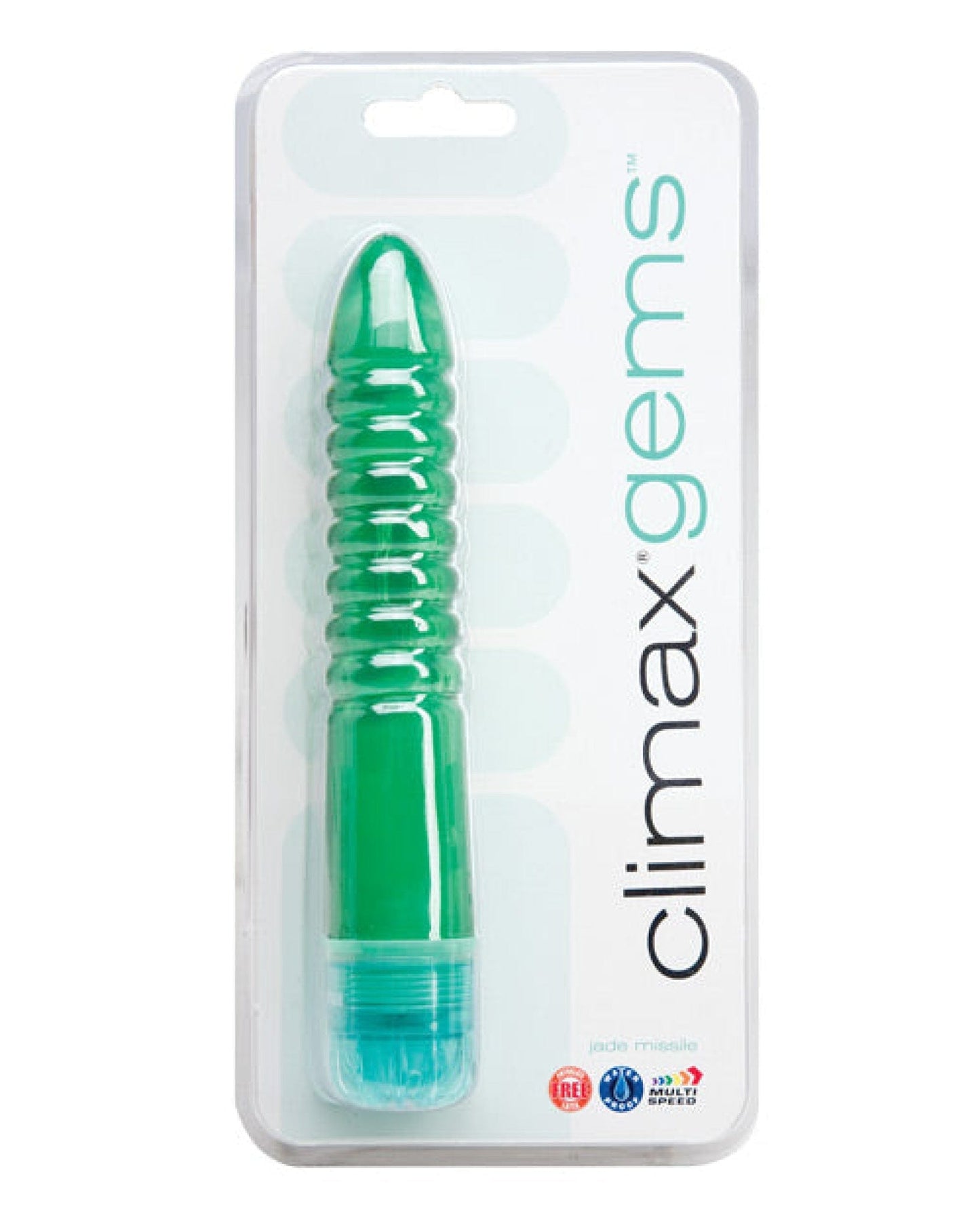 The Climax Gems Jade Missile is a must-have addition to your toy collection. This 5.75" vibrator is part of the wildly popular Climax Gems line from Topco, known for its attractive colors, clean packaging, reasonable price point, and dainty dimensions. With its sleek design and vibrant jade color, the Jade Missile is sure to catch your eye.