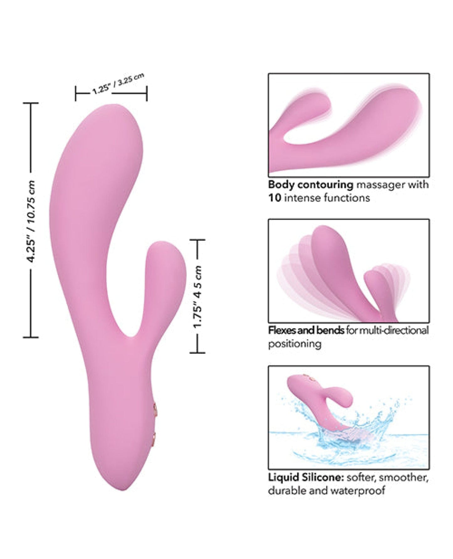 Experience a new level of pleasure with the Contour Zoie Flexible Dual Massager in Pink. This innovative dual massager is designed to provide maximum satisfaction with its flexible body, flicking teaser, and 10 indulgent vibration functions. The uniquely contoured shape and dual motor pulsations offer intense g-spot stimulation like never before.