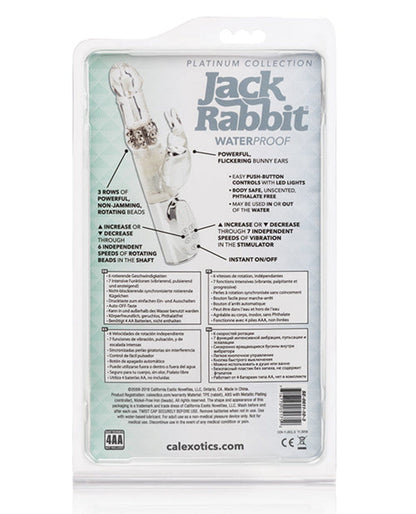 Please note that this vibrator requires four AA batteries, which are not included. Upgrade your pleasure game today with the Jack Rabbits Platinum Collection and experience the ultimate satisfaction like never before.