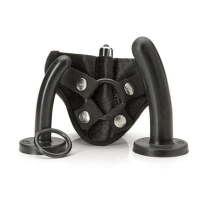 Tantus Silicone Bend Over Beginner Kit, The Bend Over Beginner Kit has two smooth Tantus Silicone dildos, 7/8 by 4 1/2 in., 1 1/4 by 5 1/2 in, a purple velvet harness, an O-ring that can be changed for play with larger dildos and a pocket built in that fits a Var. Speed Mic-Mini Vibe (incl).