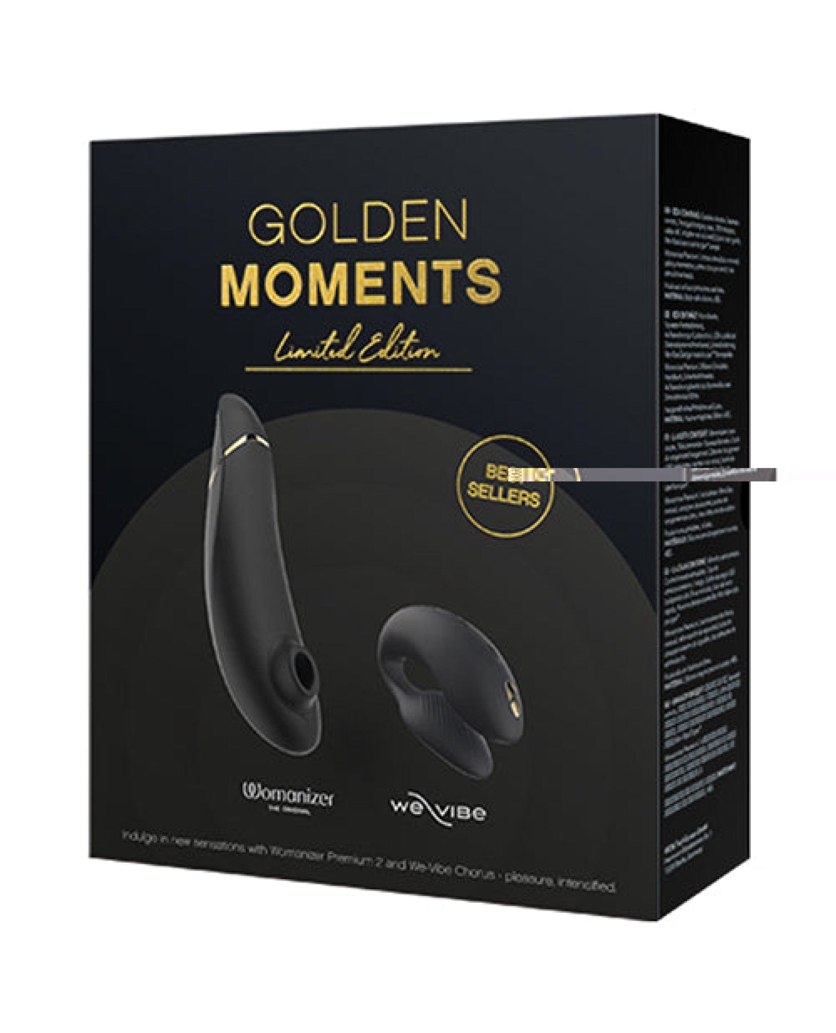 Introducing the ultimate collection for a truly unforgettable experience in the bedroom: the We-Vibe Chorus/Womanizer Premium 2 Golden Moments Collection 2023 in Black/Gold. This set brings together two of the most groundbreaking innovations in SexTech - the We-Vibe Chorus couples vibrator and the Womanizer Premium 2 Pleasure Air clitoral stimulator.