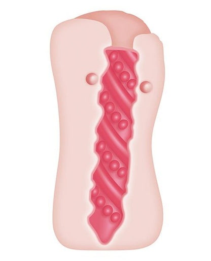 Crafted from high-quality TPE material, this stroker boasts a lifelike vaginal opening and a textured beaded channel with a prominent ring for added stimulation. Measuring 5.87 inches in height, 2.68 inches in depth, and 2.77 inches in width, this pleasure toy is the perfect size for a truly satisfying experience.